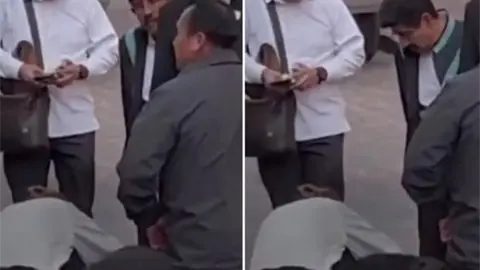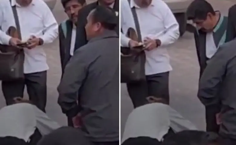 Captan momento en que limpian zapatos a ministro Hugo Aguilar