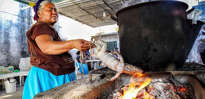 Comer los tamales de iguana, que se cuecen en hoja de plátano, es una ancestral tradición de la cuaresma en Juchitán, y en toda la región del Istmo de Tehuantepec, donde se le considera un manjar especial para Semana Santa.