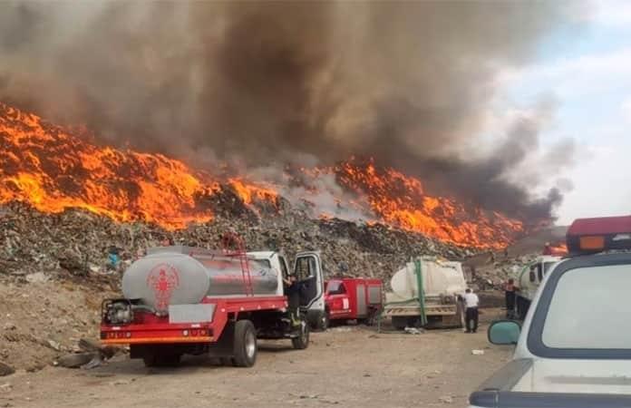 Las llamas en el enorme basurero se reportaron cerca de las 14:30 horas de este domingo, de acuerdo con reportes de la unidad de Protección Civil, cuyos directivos pidieron apoyo de otros municipios y de PC estatal.