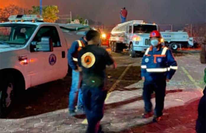 En las inmediaciones de la Universidad Pedagógica "se implementaron líneas húmedas para evitar que se propague a las instalaciones de la institución", dijo Protección Civil a través de redes sociales.