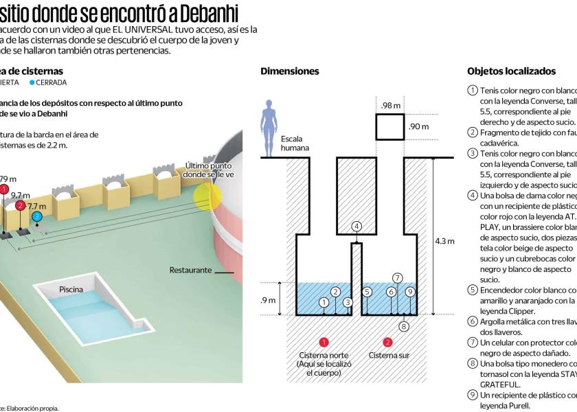 En el jardín al que se dirigió Debanhi está la cisterna donde fue hallado su cuerpo, misma que estaba en desuso y consta de tres fosas, dos de ellas abiertas.