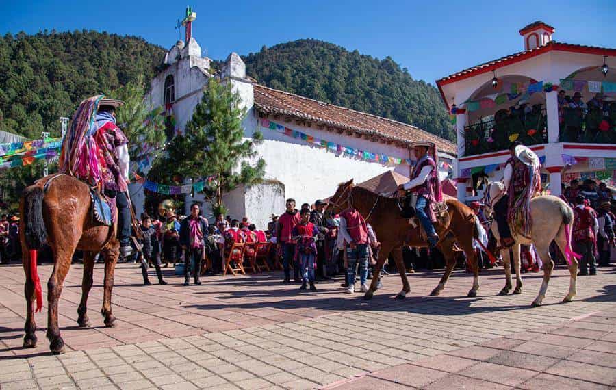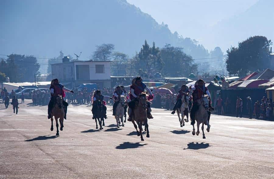 Magdalena de Jesús Cruz, habitante de Zinacantán, explicó: “Estamos en la comunidad de Zinacantán, estamos celebrando a San Sebastián Mártir y ahorita lo que vio usted son las carreras, las tradicionales carreras de caballo y la entrada de las autoridades tradicionales que son de la Iglesia”.