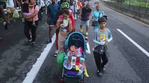 La familia integrada por dos adultos, así como sus tres menores hijos: Esteven Ariel, de 13, Teylor Matías de dos y la bebé mexicana Itzel Guadalupe; viajan en la caravana “Éxodo de justicia” debido a que no pudieron pagar una multa de 44 mil pesos para regular su situación migratoria.