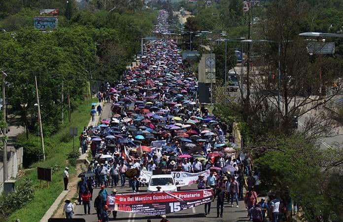 Al grito de "Gobierne quien gobierne, los derechos se defienden, cientos de integrantes de la Coordinadora marcharon por vialidades de la Ciudad de México, como Ribera de San Cosme, Insurgentes, Paseo de la Reforma y Avenida Juárez hasta el Zócalo capitalino, dónde protestaron frente a Palacio Nacional e instalaron un plantón.
