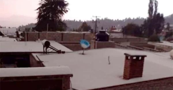 Una fuerte granizada tapizó de blanco en el municipio de Tlachichuca, ubicado cerca de las faldas del Volcán Citlaltépetl.