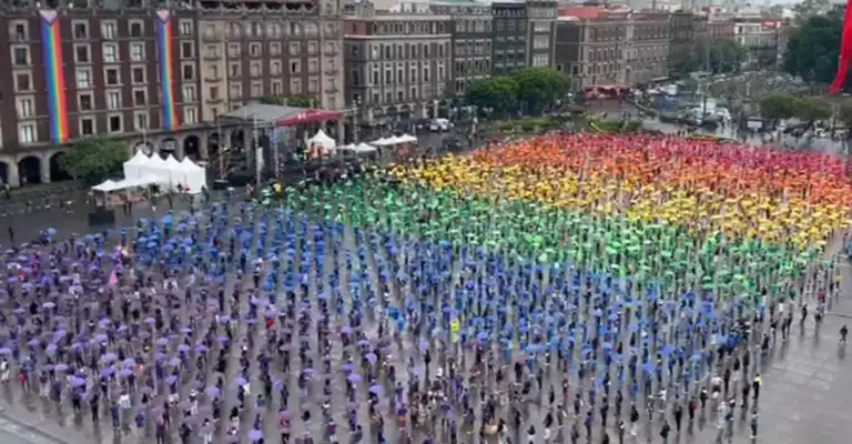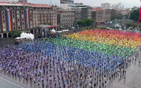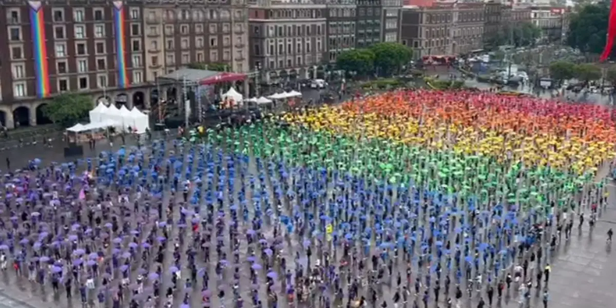 CIUDAD DE MÉXICO, junio 22 (EL UNIVERSAL).- A unos minutos de que la Secretaría de Cultura de la Ciudad de México intente romper el récord de la bandera LGBTTTIQ+ más grande del mundo en el Zócalo capitalino, cientos de personas ensayan para la coreografía que inaugurará esta bandera.