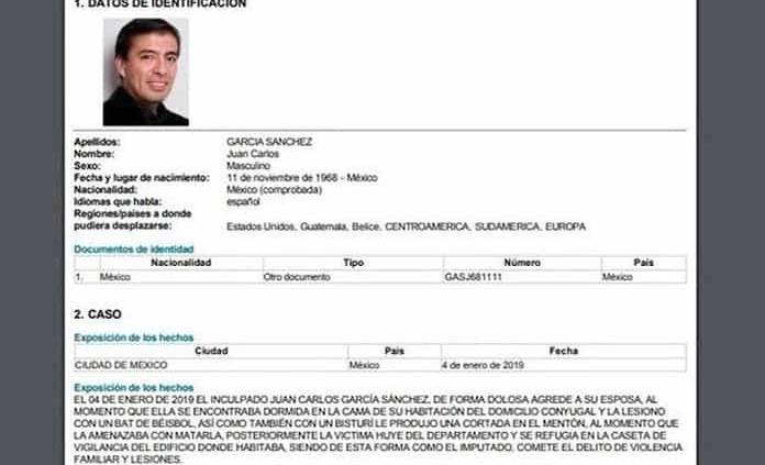 Ciudad de México.- La Organización Internacional de Policía Criminal (Interpol) emitió una ficha roja contra Juan Carlos García Sánchez, exesposo de Abril Pérez Sagaón, quien dejó el país cinco días después del feminicidio, perpetrado en la Ciudad de México el 25 de noviembre.