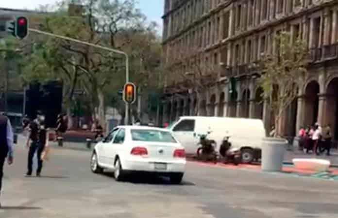 Jetta de AMLO no respeta semáforo rojo y viola reglamento de tránsito