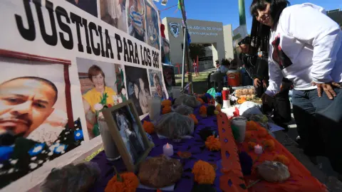 Ciudad Juárez (México), 1 nov (EFE).- Familiares de personas desaparecidas y víctimas del manejo irregular de restos humanos en un crematorio clandestino instalaron este sábado, un altar afuera de la Fiscalía de Chihuahua en reclamo y exigencia de justicia de los 386 cuerpos encontrados en condiciones "deplorables y reprobables".