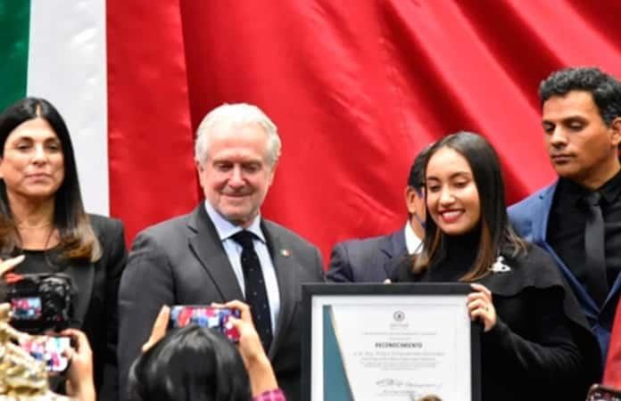 El presidente de la Cámara de Diputados, Santiago Creel, le dijo a la ingeniera "a nombre de todas y todos los diputados te agradezco por nunca renunciar a tus sueños, por ser la inspiración de miles y miles de jóvenes y por demostrar que el ingrediente más importante para alcanzar cualquier meta es tener una voluntad inquebrantable".
