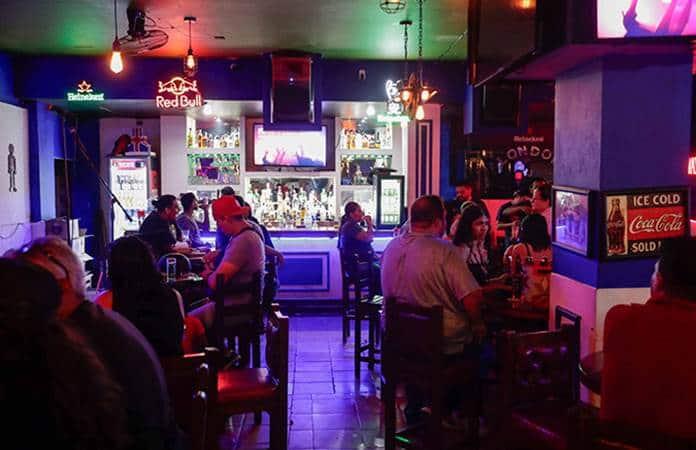 Allá por la Diana, está el bar Sunset, ahí sí está lleno, pero tampoco hay una fiesta desbordada. Mesas llenas de jóvenes y adultos disfrutan un trago y la brisa del mar. El otro que está lleno es London Pub, el único bar que ofrece música de rock en vivo en Acapulco.