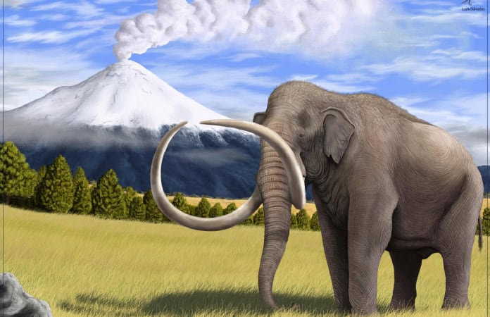 Una nublada mañana de invierno hace 11,700 años, en la región volcánica de México central, una fila de grandes mamuts columbinos, marchaban por el fondo de un valle rocoso. Llevaban sus cabezas agachadas y las trompas colgando entre sus defensas amarillentas; la manada despedía un olor acre a sudor y miedo. Iban silenciosos, solo se escuchaban sus respiraciones profundas y el crujido de las piedras bajo sus enormes patas; se levantaba un fino polvo gris que se pegaba a su piel y pestañas. Adelante del grupo, una vigorosa mamut hembra abría camino entre los arbustos, la joven guía debía medir más de cuatro metros de alto y pesar unas ocho toneladas, tenía el lomo cubierto de un ralo pelaje dorado y rojizo que destacaba entre los matorrales; ella se detenía a momentos, levantando su trompa tratando de olfatear algún indicio de peligro en esta región donde se habían aventurado; le inquietaba estar rodeada de laderas empinadas, lugar propicio para una emboscada de leones. Ella se sabía fuerte y valiente, no temía a los leones, ni a los lobos que siempre huían ante sus embestidas agachando las orejas. Le preocupaba su manada donde los integrantes eran sus tías, hermanas, una con el vientre inflado pronta a parir y dos inquietos muy jóvenes machos con sus defensas apenas asomándoles entre los labios.