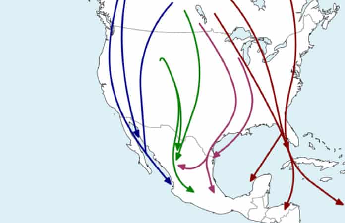 ? Una ruta de migración de aves en Norteamérica pasa por San Luis Potosí. Durante miles de años patos silvestres, cormoranes, garzas y centenares de especies aprovechaban las lagunas y manantiales para descansar y alimentarse durante sus largos viajes.
