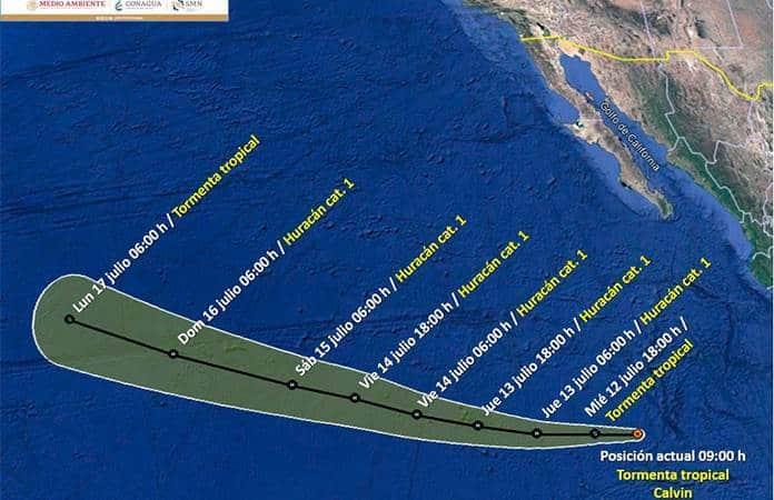 De acuerdo con el reporte del SMN, la tormenta Calvin está a 1,170 kilómetros de las costas del norteño estado de Baja California Sur, desplazándose al oeste, y se desplaza con vientos de rachas máximas de 95 kilómetros por hora.