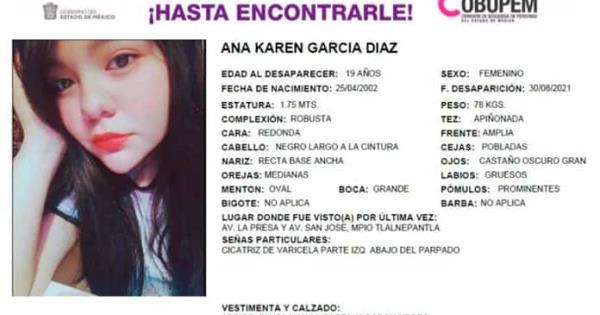 De acuerdo con el documento difundido por las autoridades, Ana Karen García Díaz tiene 19 años de edad.