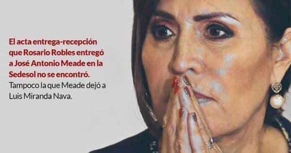 Dos meses después de que Rosario Robles Berlanga fuera enviada al Penal de Santa Martha Acatitla, las actas entrega-recepción que ella entregó a su sucesor en la Secretaría de Desarrollo Social (Sedesol), José Antonio Meade, fueron declaradas como extraviadas. Y no sólo esas: también las que Meade entregó a su sucesor, Luis Miranda Nava.