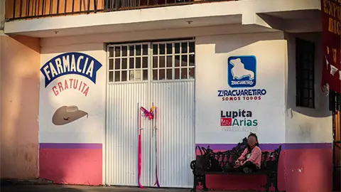 "Todo es gratuito. Hay enfermera, va a haber médico general. Por ejemplo, en la farmacia matriz que está en Uruapan ya se cuenta con médico general, con nutriólogo, sicólogo, y todos son voluntarios, quienes gusten participar y ayudar gratuitamente a la gente. Por otra parte, 70% de los medicamentos que hay en estas farmacias es apoyo de la ciudadanía y el otro 30%, pues tu servidora tiene que ver la forma de conseguirlos".