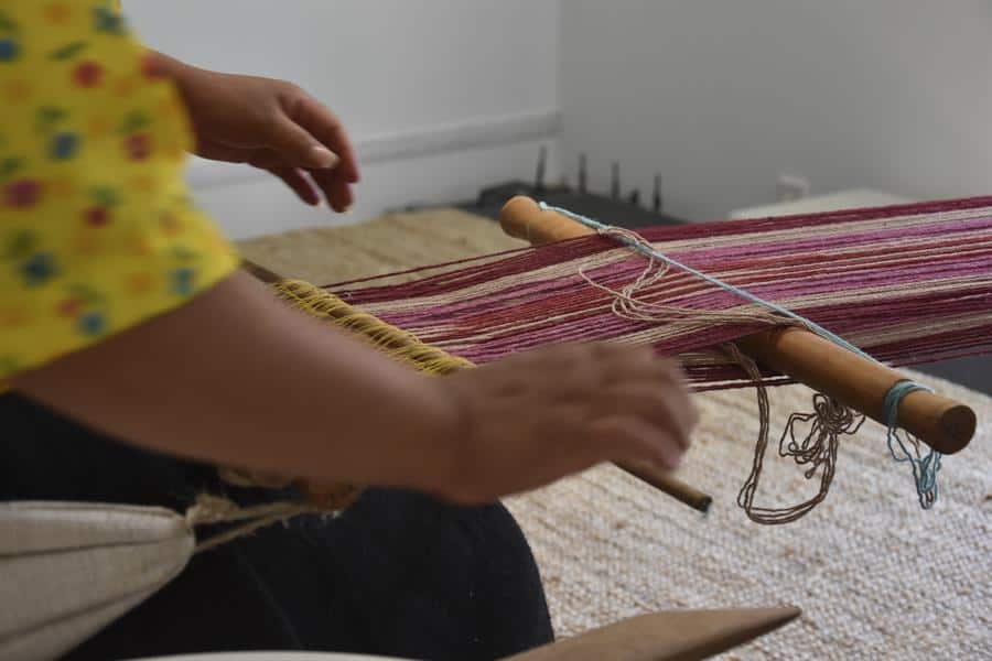 Después -continúa con el proceso-, "pasamos al urdimbre donde pensamos el tamaño y diseño de la pieza, lo almidonamos con masa de maíz, se deja al sol por medio día y de ahí se lleva al telar, donde se comienza a hacer la tela que después se volverá a lavar".