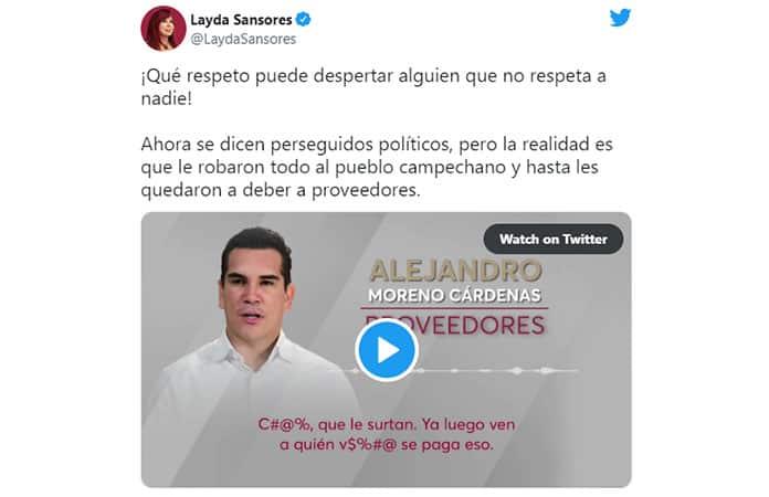 La gobernadora de Campeche usó su cuenta oficial de Twitter para lanzar un mensaje y difundir el audio de casi dos minutos.