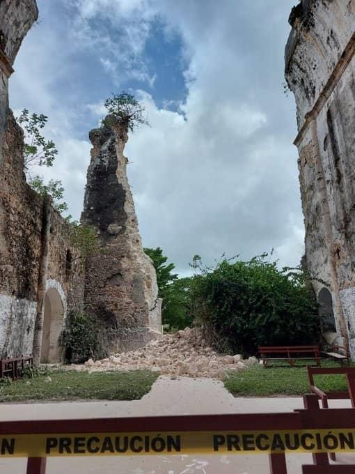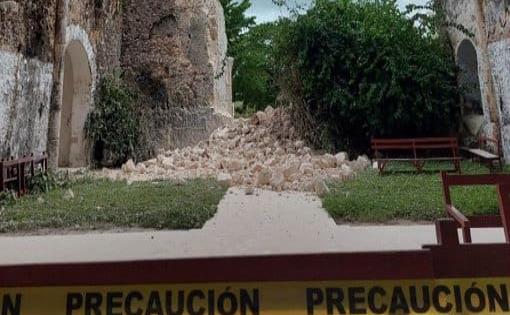 Lluvias derrumban parte de la fachada del Templo de Tihosuco