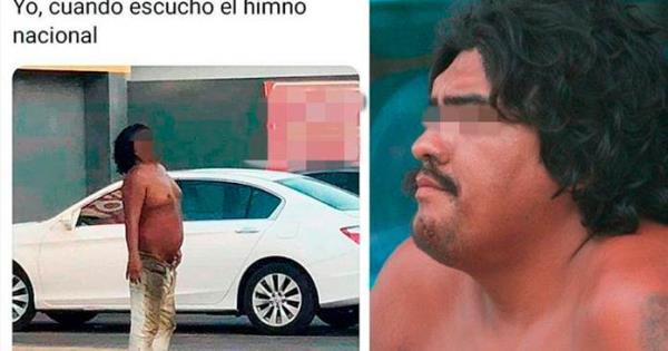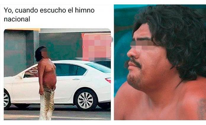 Los vecinos de la localidad crearon una imagen donde el hombre está de pie y la titularon "Yo, Cuando escucho el Himno Nacional".
