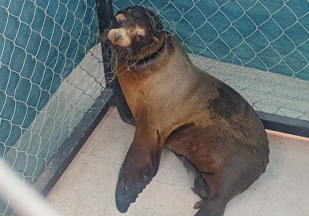 El caso se difundió el lunes, cuando habitantes de San Carlos solicitaron apoyo en redes sociales tras la circulación de un video donde se observaba al lobo marino atrapado en una red de enmalle, en aparente mal estado físico, en la zona conocida como Arco de la Lágrima, dentro del área portuaria.