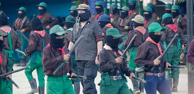 Y esas tropas insurgentes también respondieron con dos prolongados: "¡Noooooo!", cuando el Subcomandante Moisés les preguntó si tenían miedo de enfrentar al presidente de México, Andrés Manuel López Obrador, para combatir su principal proyecto en el sureste de México: la construcción del Tren Maya.