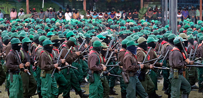 LA REALIDAD, Chis. (EL UNIVERSAL).- Cuando el sol caía del otro lado de la montaña, miles de zapatistas entraron en la explanada del caracol. Con dos palos en la mano, marcaban el paso de la marcha que recordaría el 25 aniversario de su alzamiento.