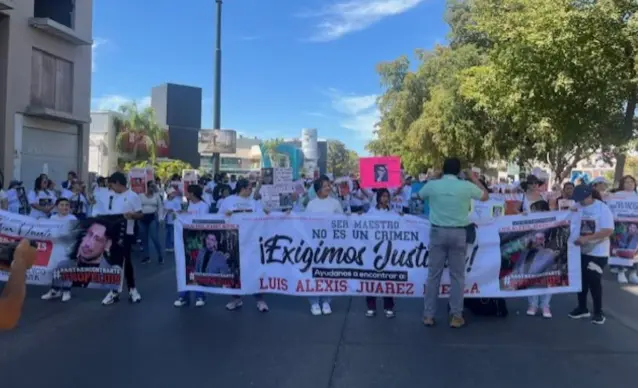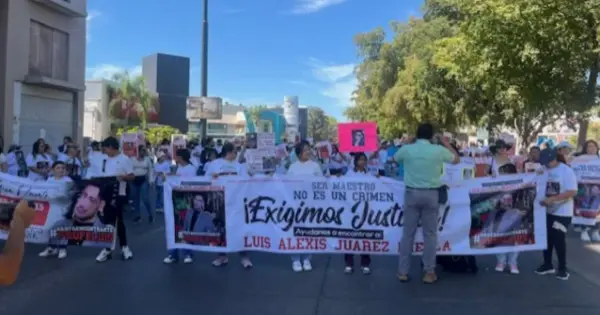 El pasado miércoles 14 de mayo, un gran número de alumnos y maestros de la escuela primaria, de la colonia Mirador, donde Luis Alexis, es maestro de sexto grado, con pancartas y mantas, en compañía de familiares del docente, se concentraron en el atrio de catedral para después marchar rumbo a la Fiscalía General del Estado.