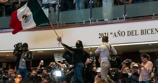 Los manifestantes ingresaron ondeando banderas de México y pancartas en contra de la reforma, y algunos senadores de la oposición se les sumaron mientras gritaban consignas dentro de la cámara del Senado. Afuera del recinto, otros estallaron en júbilo cuando los noticieros anunciaron que el Senado tomaría un receso.