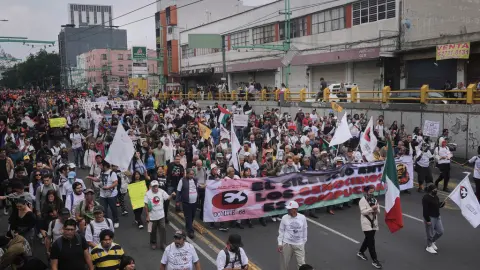 Atrás de ellos marcharon madres buscadoras, luego familiares de los 43 normalistas desaparecidos de Ayotzinapa y más atrás estudiantes de diferentes universidades del país. En la parte final se unieron organizaciones populares y sociales.