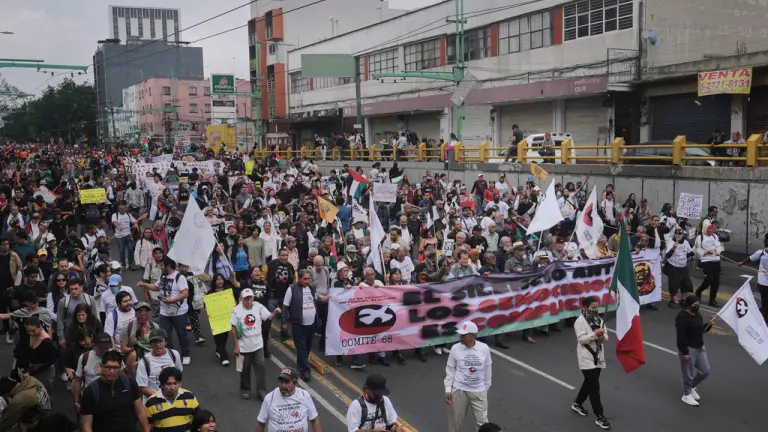 En el aniversario de la matanza en Tlatelolco, la marcha conmemorativa exige justicia liderada por el Comité Pro Libertades 68.