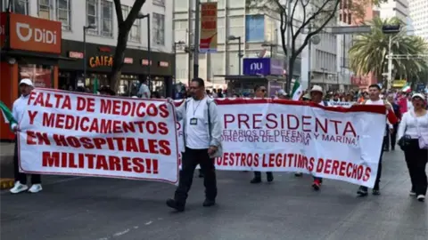 Desde las 11:00 horas, los manifestantes se concentraron en Paseo de la Reforma para dirigirse a Palacio Nacional, donde entregaron un pliego petitorio con sus demandas, como el mejoramiento de hospitales y el abasto de medicamento para personal militar, la entrega de pensiones completas a viudas y huérfanos, entre otras.