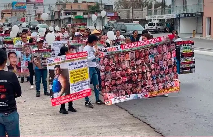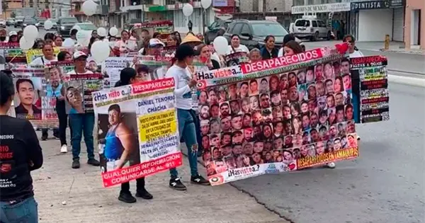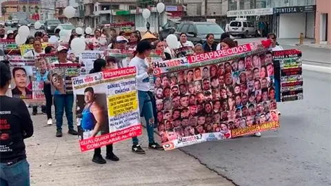 Madres buscadoras y familia en general, salieron de la plaza Benito Juárez en la colonia Bella Vista portando mantas con fotografías de sus seres queridos que desaparecieron algunos, desde hace más de tres años y otros recientemente.