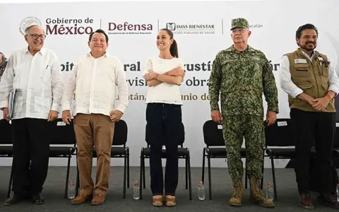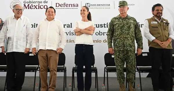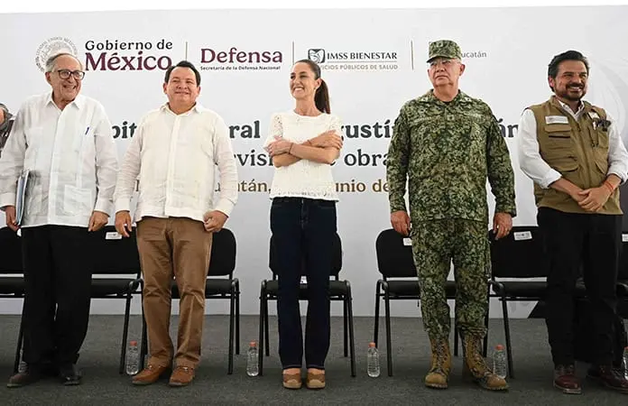 Durante la supervisión de la obra del Hospital General Agustín O’Horán, la Mandataria reiteró que los mexicanos en Estados Unidos hacen funcionar a la economía del vecino país, por lo que México brilla. “Estamos viviendo un momento extraordinario y la fuerza que tiene la Presidenta no es otra que la fuerza que tiene el pueblo de México. Por eso México brilla hoy en el concierto de las naciones”, señaló.