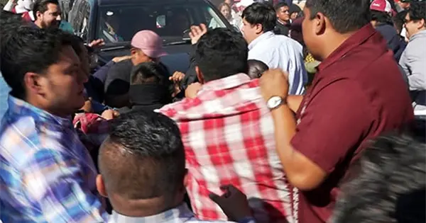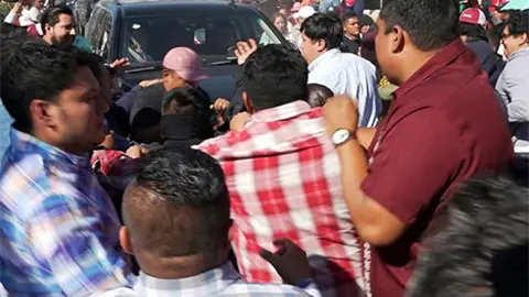 Mientras la mandataria anunciaba los alcances del nuevo programa federal, los maestros arribaron al acto oficial y derribaron las vallas de seguridad para arengar y exigir la abrogación de la Ley del ISSSTE de 2007.
