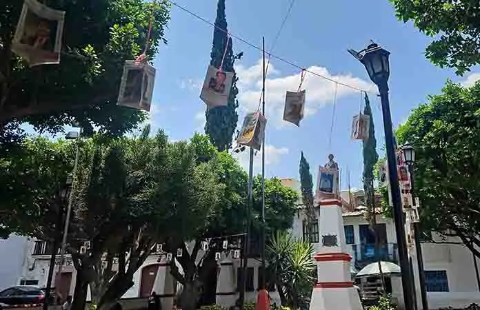 El parque Vicente Guerrero es el único lugar donde hay fichas y fotografías de personas desaparecidas, las pegó a finales de 2025 la colectiva Memoria, Verdad y Justicia de Acapulco.