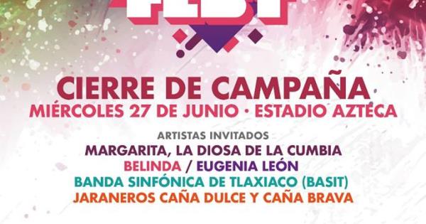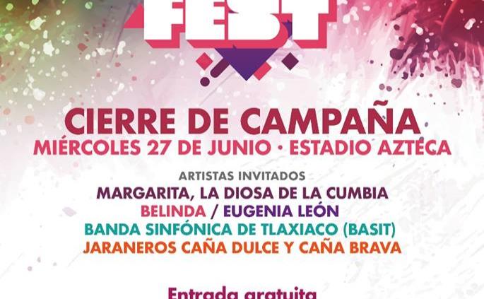 El cierre nacional de campaña de Andrés Manuel López Obrador, candidato por la coalición Juntos Haremos Historia, será este miércoles 27 de junio de 2018 en el Estadio Azteca, evento que ha difundido el partido Morena a través de volantes y un cartel en redes sociales en el que lo denominan como "AMLO fest".