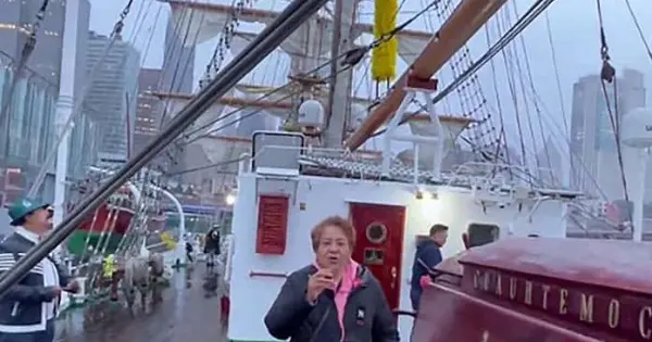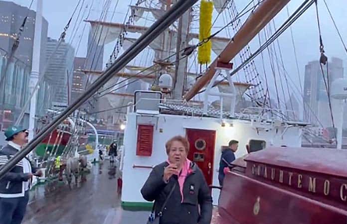 Ciudad de México.- Militantes y simpatizantes de Morena en Estados Unidos utilizaron el buque escuela ARM Cuauhtémoc para promover el voto en las elecciones al Poder Judicial que se desarrollarán el próximo domingo 1 de junio en nuestro país.
