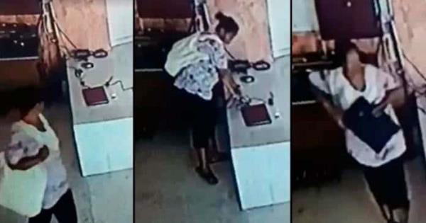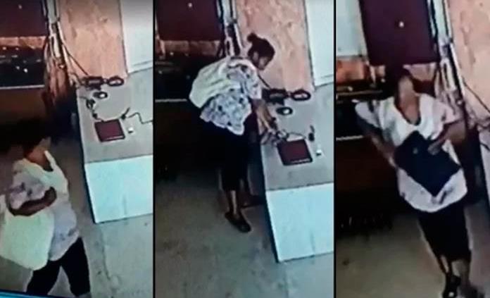 Las imágenes de ese hecho reflejaron que una mujer joven se hinca muy cerca de otra persona y, en un descuido, se apodera de una bolsa, se levanta y sale tranquilamente del recinto católico.