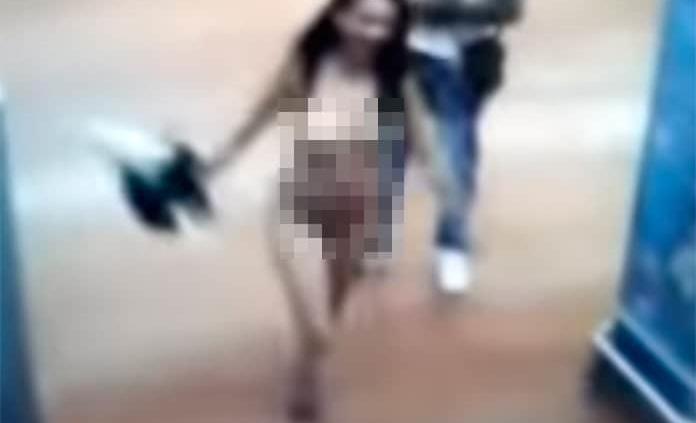 En la grabación aparece la mujer, acompañada de un hombre, es abordada por un guardia de seguridad a la salida del establecimiento. Parece pedirle una revisión de sus pertenencias.