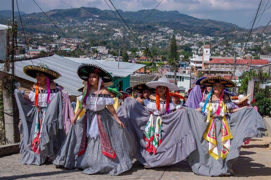 Mujeres indígenas bailan en Chiapas por el Día de la Candelaria