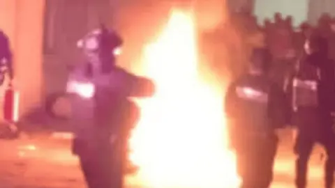 Los amararon, le rociaron gasolina y le prendieron fuego a uno de ellos, quien se quemó frente a la turba que observó expectante cómo moría.