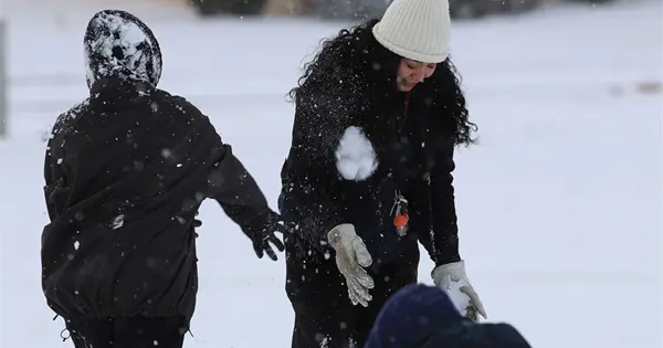 A pesar del frío extremo, familias salen a las calles para disfrutar de la nevada en Ciudad Juárez, México.