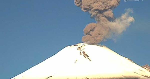 Cámaras de WebCams México que monitorean el volcán Popocatépetl, registraron su actividad, en la que se pudo ver la salida de una gran fumarola.