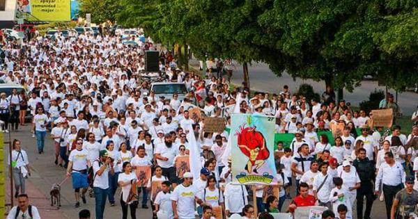 Activistas, funcionarios públicos, políticos y familias completas se concentraron en la explanada del estadio de futbol de los Dorados, donde iniciaron una larga marcha por el boulevard Enrique Sánchez Alonso del Tres Ríos.