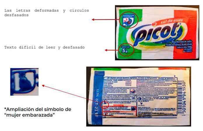 "En la parte frontal existe distorsión en la imagen y leyenda ‘para malestar estomacal’; además, el texto sobre el gramaje es poco legible", indicó la Cofepris.