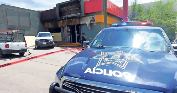 Aguascalientes, Ags.- El aseguramiento de un narcolaboratorio en la zona serrana del municipio de Rincón de Romos por parte de fuerzas federales y estatales desató la violencia en varios municipios del estado, donde al menos cinco tiendas de conveniencia fueron incendiadas y varias carreteras fueron bloqueadas con vehículos y con un saldo final de 18 personas detenidas.