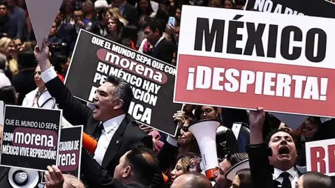 Ciudad de México.- Gritos, pancartas, acusaciones de narcogobierno y amenazas de desafuero empañaron la entrega del Primer Informe de la presidenta Claudia Sheinbaum al Poder Legislativo.