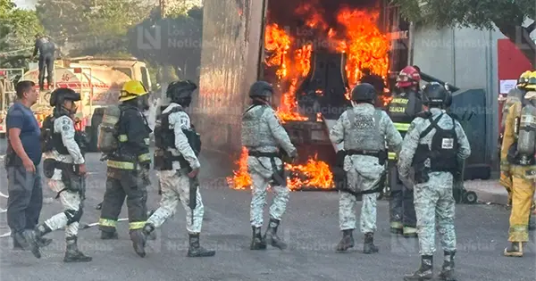 El cuerpo de bomberos y elementos de la Policía Estatal Preventiva y del ejército que fueron movilizados, al llegar al sitio, sobre el Paseo de las Américas, confirmaron que un tráiler se encontraba en llamas y en la caja había varias máquinas de juegos electrónicos de apuestas, las cuales fueron consumidas por el fuego.